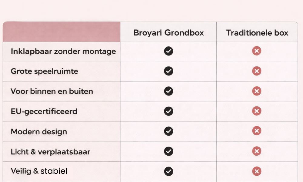 De Broyari Grondbox creëert een ruime, veilige speelzone in jouw woonkamer. Meer bewegingsvrijheid voor je baby, meer rust voor jou.